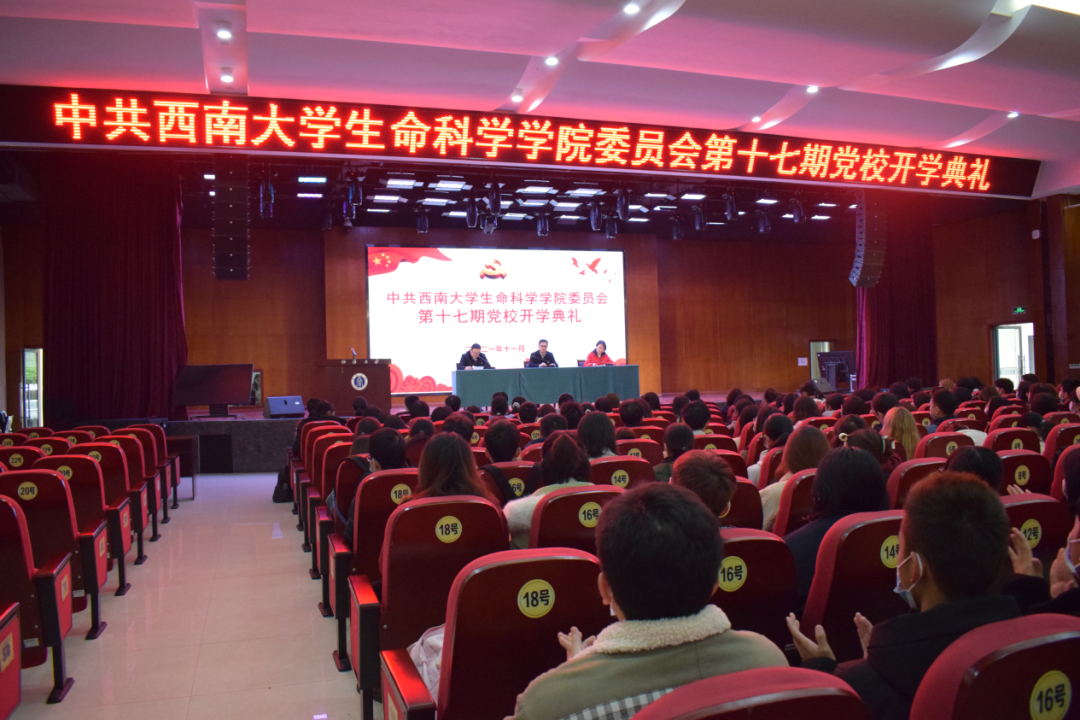 为适应新形势党建发展的要求,做好党员发展工作,响应中国共产党第十九届中央委员会第六次全体会议精神,2021年11月12日下午14:00,中共西南大学beat365中国官方网站委员会第十七期党校开学典礼在学生处107会议室顺利召开。学院党校校长、学院党委书记蒋寒,学院党委副书记、纪委书记陈渝,学院党委副书记石莹华,学院党校班主任、研究生辅导员谷彩霞及全院190余名学员参加典礼。典礼由陈渝同志主持。