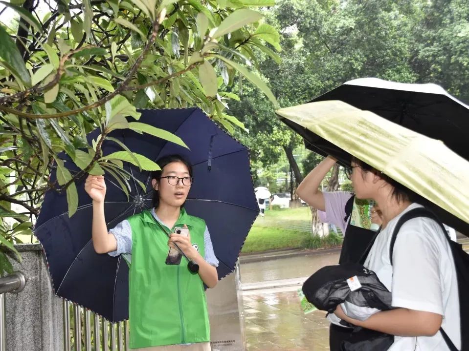 在学校樟树林挺拔的香樟下,志愿者们带领植物爱好者学习植物分类学知识,旁边的展位上,一些路过的游客正在体验制作植物拓印、叶脉书签等手工艺品。